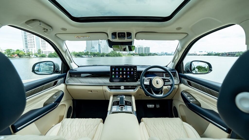 การออกแบบภายในของ All New GWM TANK 500 มาพร้อมกับแนวคิด Luxury ที่ให้ทั้งความหรูหรา กว้างขวาง และสะดวกสบาย ใส่ใจทุกรายละเอียดด้วยวัสดุสีดำ สีดำเงา สีโครเมียม และสีเงิน แผงคอนโซลหน้าและชุดเกียร์แบบ Electronic Shifter สีทูโทน นาฬิกาแบบคลาสสิก เบาะหนัง NAPPA ลำโพง Infinity 12 ตัวที่พร้อมมอบความบันเทิงอย่างเต็มรูปแบบร่วมกับระบบแอมพลิฟายเออร์อิสระและระบบปรับระดับเสียงอัตโนมัติตามความเร็วรถ ฟังก์ชันไฟตกแต่งห้องโดยสารแบบหลากสีและเป็นจังหวะ เพื่อสร้างบรรยากาศภายในให้เพลิดเพลิน ระบบปรับอากาศอัตโนมัติแยกอิสระซ้าย-ขวา ระบบกรองอากาศ PM2.5 และระบบชาร์จโทรศัพท์แบบไร้สาย เพื่อช่วยให้การชาร์จโทรศัพท์มือถือเป็นไปได้อย่างสะดวกและรวดเร็ว