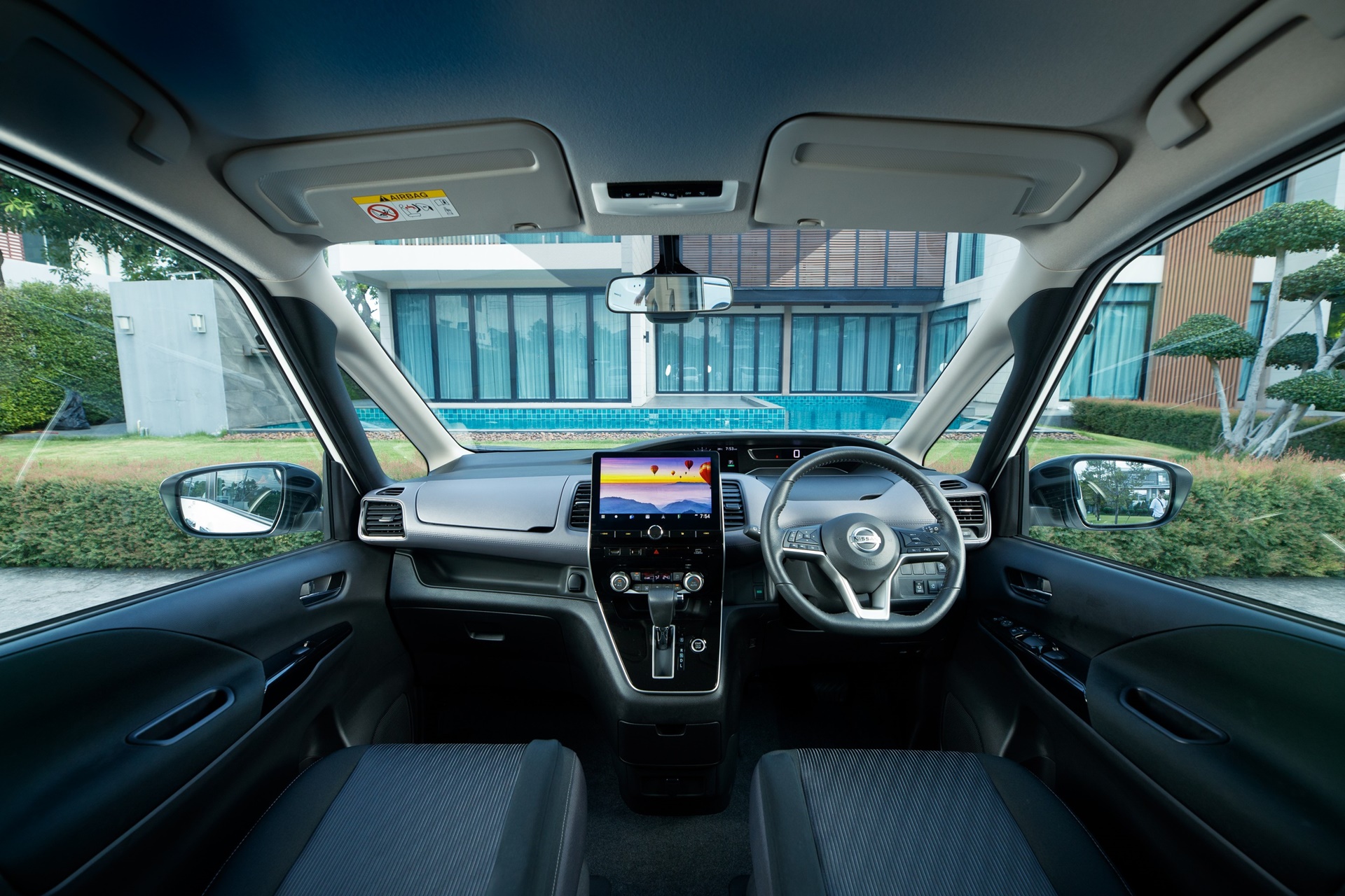 การออกแบบที่โดดเด่น ทำให้นิสสัน เซเรน่า ใหม่ มีพื้นที่มากพอสำหรับเก็บกระเป๋าเดินทางหรือสัมภาระขนาดใหญ่ทางด้านหลังโดยยังคงมีพื้นที่กว้างขวางนั่งสบายในเบาะที่นั่งแถว 3 กระจกบานใหญ่รอบคันทั้งกระจกหน้า และหน้าต่างด้านข้าง ให้ทัศนวิสัยที่ดีเยี่ยม รวมทั้งให้ความรู้สึกโปร่ง โล่ง ช่วยลดอาการเมารถได้ รวมทั้งสร้างความประทับใจกับทิวทัศน์ด้านนอกได้เต็มที่